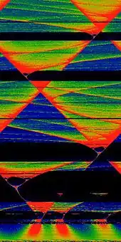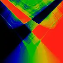 In mathematics, particularly in dynamical systems, Arnold tongues (named after Vladimir Arnold)[1][2] are a pictorial phenomenon that occur when visualizing how the rotation number of a dynamical system, or other related invariant property thereof, changes according to two or more of its parameters. The regions of constant rotation number have been observed, for some dynamical systems, to form geometric shapes that resemble tongues, in which case they are called Arnold tongues.[3]