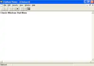 ClipBook Viewer was first introduced in Windows for Workgroups 3.1.[1] It allows users to store clipboard contents in ClipBook pages, share the contents of the clipboard with other users[2] or save the clipboard contents to a file (with .clp extension) to reuse them later.[1][3] (Clipboard files cannot be shared.)[2] The View menu allows viewing clipboard contents in various formats such as plain text, Unicode, HTML, RTF and OLE private data.[3] In Windows XP, it is not listed in the Start menu and can only be accessed through its executable file, ClipBrd.exe.[4]
