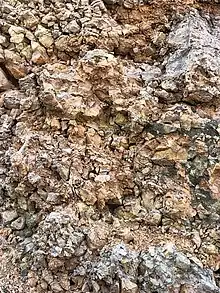 In Saint-Etienne coal basin, five burning hills (montagnes de feu) have been described from the late 16th Century to the early 19th century around the city of Saint-Etienne.[24][25] Some of these fires were reported burning for 3 centuries. Most of them are extinguished in 1785 [26]These old burning hills correspond today to the Mont Salson, Bois d'Avaize and Cote Chaude in Saint-Etienne, la colline du Brûlé in la Ricamarie and Le mont du Feu (Mount of fire) in Genilac. The fire in Genilac lasted 30 years from 1740.[27] Outcrops of pyrometamorphic rocks generated by these fires are visible today on Mont Salson and bois d'Avaize.