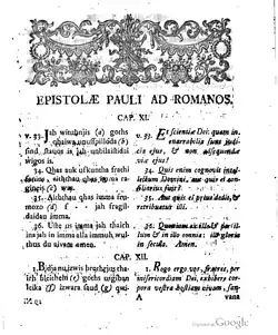 {{cite book}}: CS1 maint: location missing publisher (link) - Knittel, Franz A. (1763). Fragmenta Versionis Ulphilanae (in Latin). p. 1.