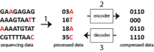 Encoding schemes are used to convert coordinate integers into binary form to provide additional compression gains. Encoding designs, such as the Golomb code and the Huffman code, have been incorporated into genomic data compression tools.[5][6][7][8][9][10] Of course, encoding schemes entail accompanying decoding algorithms. Choice of the decoding scheme potentially affects the efficiency of sequence information retrieval.