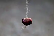 Conkers is a traditional children's game in Great Britain and Ireland played using the seeds of horse chestnut trees—the name 'conker' is also applied to the seed and to the tree itself. The game is played by two players, each with a conker threaded onto a piece of string: they take turns striking each other's conker until one breaks.