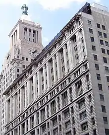 The light bulbs on the tower's clock were replaced in 1994.[68] The tower and facade were repaired once again from 1997 to 2001,[61] and the light bulbs on the facade were replaced in 2008.[69] In 2010, it was officially designated a city landmark by the New York City Landmarks Preservation Commission.[8] By then, the space was occupied by such tenants as the New York Sports Club, the Apple Bank for Savings, and a Raymour & Flanigan furniture store.[61]