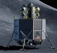 Like its predecessor, the Altair design consists of two parts: an ascent stage which houses the four-person crew; and a descent stage consisting of the landing gear, and storage for the majority of the crew's consumables (oxygen and water) and for scientific equipment. Unlike the Lunar Module, Altair was designed to land in the lunar polar regions favored by NASA for future lunar base construction.[20] Altair, like the Lunar Module, was not designed to be reusable, and the ascent stage would be discarded after use.