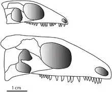 Delorhynchus is an extinct genus of lanthanosuchoid parareptile known from the late Early Permian (Artinskian age) Garber Formation of Comanche County, Oklahoma. It contains three species: the type species D. priscus is based on a series of maxillae.[3] The second species to be described, D. cifellii, is known from a larger number of well-preserved skulls and skeletal material.[4] The third species, D. multidentatus, is based on a fragmentary skull with several rows of teeth on its jaw.[5]