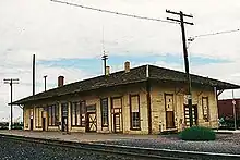 In March 1881, the second transcontinental railroad, uniting the Atchison, Topeka, and Santa Fe Railway from the east with the Southern Pacific Railway from the west, was completed at Deming. To mark the occasion, a silver spike was driven to connect the rails. Deming subsequently received a large two-story "union depot" that in 1930 was remodeled into a one-story structure.[2]