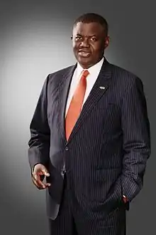 Sir Demola Aladekomo (born 31 December 1957) is a computer engineer from Lagos, Nigeria. Aladekomo is the chairman of SmartCity Resorts Plc,[1] Card Centre Nigeria Limited,[2] Treasure-nest Limited, Crops Nigeria Limited, Chams Consortium Limited,[3] Insider Concepts Limited, and the founder of Chams Plc.[4] He is a Fellow of the Nigeria Computer Society (FNCS)[5] and the Computer Professional Registration Council (CPN); a member of the Nigerian Society of Engineers (NSE), and the immediate past President of the Lagos Business School Alumni Association (LBSAA)[6] and the Nigeria Computer Society, respectively. Aladekomo has also served as the vice chairman of the Board of Trustees of SmartCard Society of Nigeria. He is the founder of DATA Foundation[7] and Volunteer Corps,[8] non-governmental organizations engaged in corporate social investments in Nigeria.