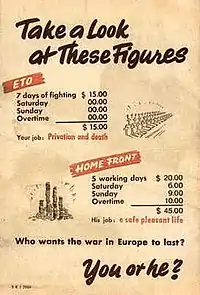 If successfully implemented, the leadership of a cause can be made sufficiently troublesome to inspire revolution when there will be insufficient capacity to exercise active hatred towards the external enemy.[2]: 169 Diverting frustration to one's own leadership is often the method most commonly seen in wartime propaganda, as the photographs below attest. With the implementation of modern warfare in World War I and all its associated stresses, "every belligerent took a hand in the perilous business of fomenting dissension and revolution abroad, reckless of the possible repercussions of a successful revolt".[2]: 169