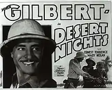 Desert Nights (also known as Thirst) is a 1929 American silent adventure/romantic drama film starring John Gilbert, Ernest Torrence, and Mary Nolan.[1][2] Directed by William Nigh, the film is the last silent film starring John Gilbert.