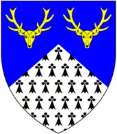 Per chevron azure and ermine in chief two buck's heads cabossed or | Arscott, Holsworthy;[5] Dunsland, Bradford; Tetcott; Annery, Monkleigh |