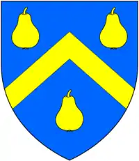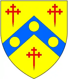Argent, on a chief sable three cinquefoils of the field | Downton[lower-alpha 3] |
