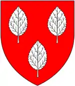 Argent, between two chevrons sable three ashen keys vert | Ayshford, Burlescombe |