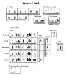Standard Indic (IAST). This table is provided as a reference for the position of the letters on all the tables.