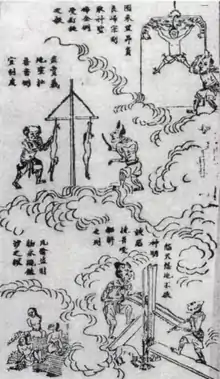![]() Illustration from the Jade Record: Tortures being meted out in the Sixth Court of Hell | |||||||||