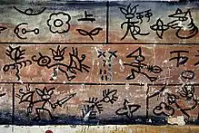 The Dongba, Tomba or Tompa or Mo-so symbols are a system of pictographic glyphs used by the ²dto¹mba (Bon priests) of the Naxi people in southern China. In the Naxi language it is called ²ss ³dgyu 'wood records' or ²lv ³dgyu 'stone records'.[1] The first artifacts with this script on them originate from approximately 30 AD.[2]