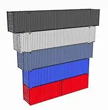Larger containers (45 ft or up) are often placed on top of smaller containers fitting in the available wells to efficiently utilize all available space. All wells are also capable of carrying two 20 ft ISO containers in the bottom position.[8][9]