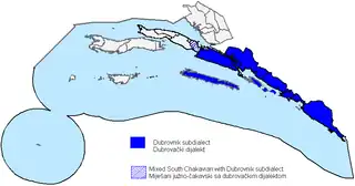 The Dubrovnik subdialect is a subdialect of the Shtokavian dialect of Serbo-Croatian.[1] It is spoken in the area of Dubrovnik and the littoral of the former Republic of Ragusa, from Janjina on the Pelješac peninsula to the Croatian border with Montenegro, island of Mljet.[2]