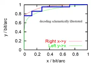 An example EXIT chart showing two components "right" and "left" and an example decoding (blue)
