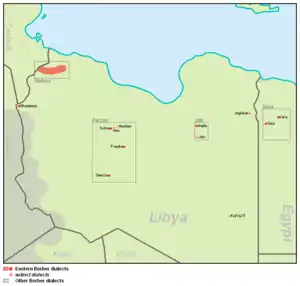 The Eastern Berber languages are a group of Berber languages spoken in Libya and Egypt. They include Awjila, Sokna and Fezzan (El-Fogaha), Siwi and Ghadamès,[1] though it is not clear that they form a valid genealogical group.
