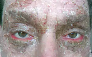 Ectropion is a medical condition in which the lower eyelid turns outwards.[1] It is one of the notable aspects of newborns exhibiting congenital harlequin-type ichthyosis, but ectropion can occur due to any weakening of tissue of the lower eyelid. The condition can be repaired surgically. Ectropion is also found in dogs as an inherited, developmental condition.[2]