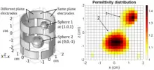 where is the sensitivity distribution of an ECVT sensor as shown to the right. Upon application of the sensitivity gradient as described in,[11] a 3D and 2D velocity profile corresponding to the figure above are shown in the figure to the right.