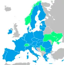 The Agency signed Administrative Arrangements with Norway (2006),[17] Switzerland (2012), Serbia (2013), Ukraine (2015) and the United States (2023) enabling them to participate in EDA's projects and programmes without exercising voting rights. All Administrative Arrangements are approved by the European Council. The Head of the Agency is responsible for negotiating these arrangements in accordance with directives given by the EDA Steering Board.[18]