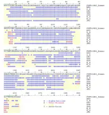 Using the PELE program of Biology WorkBench the protein sequence of FGFR1OP2 was analyzed, and FGFR1OP2 appears to be completely composed of alpha helices.[14] No structural models for the Homo sapiens FGFR1OP2 protein could be found, but the Mus musculus FGFR1OP2 protein's structure can be seen below.