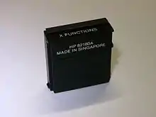 In addition to clones based on emulated HP-41 hardware, there exists at least one actual hardware clone of the HP-41 series. This is the HP41CL HP-41-series CPU board upgrade created by Monte Dalrymple at Systemyde.[15] The HP41CL is a ground up redesign of the components found on the HP-41 CPU board, including the CPU, which is implemented on an FPGA and coded in Verilog RTL.[16] The HP41CL upgrade board is made as a drop-in replacement for the HP-41 series CPU board, assuming that one has an HP-41 that has a compatible CPU board connector and a separate CPU board as well.[17] The upgrade comes with an over 600 register extended memory and over 320 plug-in module images.[15] This is possible due to the fact that the HP41CL has over 1024 pages of 4K-word flash memory built in, of which over 500 pages are pre-loaded with HP-41 software, as well as the upgrade board providing 128 RAM pages, which are made available to the user via a custom MMU.[15] In addition, a "turbo" mode is provided by the HP41CL upgrade board's "NEWT" CPU design, which allows the user to speed up their calculator by a factor of around 50 times.[15] Also, the HP41CL maintains full compatibility with the HP-41 series bus, so that most plug-in modules can still be used in a fully backward compatible fashion.[15] Additionally, Systemyde makes an HP-41 compatible timer module clone as well as a GPS receiver interface module.[18] Furthermore, an optional RS-232 full-duplex serial connector (with a 2.5mm stereo jack physical interface) is available, if one has a free module slot.[19]