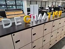 The inside of Mediatonic's office on 28th September 2023 taken by now ex employee Ed Fear[127] who was the director of their other game Murder By Numbers, The word Mediatonic was rearranged to spell 'Decimation'