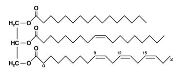 In nutrition, biology, and chemistry, fat usually means any ester of fatty acids, or a mixture of such compounds, most commonly those that occur in living beings or in food.[1]