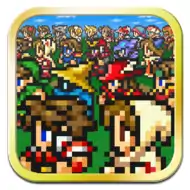 Players' characters could traverse an overhead map between battles. After a series of battles, players could confront a boss enemy.[4] During combat, the players controled a party of characters that could be as large as forty individuals.[5] The game featured the Active Time Battle (ATB) system found in other Final Fantasy titles. In this system, battles were turn-based, with turns taken when the gradually increasing ATB gauge reached its capacity.[6] Upon attacking, the bar was emptied and gradually started refilling again. Defeating enemies granted experience points which the player needed to level up. Strengthening characters in this way gave players character slots to expand the player's party.[7] When characters discovered weaponry, it was auto equipped to all characters that could wield it.[7] Once every three hours, the Fever option was available, granting the player the ability to attack without needing the ATB gauge to be refilled.[6]
