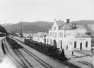The first committee that looked into the possibility of a railway to Flekkefjord was created in 1875.[1] After the completion of Jæren Line from Stavanger to Egersund, in 1878, proposals were made to build an extension westwards along the coast, that eventually would reach Oslo. The first part of what was named the Vestland Line was passed by Parliament in 1894, and would run from Egersund, via Sira, to Flekkefjord. The initial proposal proposed that the line would eventually continue onwards via Mandal to Kristiansand.[2] The decision to build the line was taken by the Parliament of Norway in 1894.[3] Construction started in 1896, and was originally planned to be completed by 1902. However, delays prevented the line from being be brought into use before 1 November 1904. The line was built by the Norwegian State Railways (NSB) and was 64 km (40 mi) long.[4]