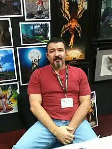 Fred Fields was born in northern Kentucky.[1] He grew up in the small town of Burlington, Kentucky.[2] Fields wanted to be an artist since childhood: "I don't know that becoming an artist is a decision you can make... I've been drawing since before I can remember, and I started painting at age nine. I used to do all these monsters and stuff, and my mom was frankly a little concerned about it. Now that I'm making a living at it, I think mom's OK with it. My parents always encouraged me to draw and do what I wanted with it. They've always been 100% behind me." Fields attended the Central Academy of Commercial Art in Cincinnati, and moved to Chicago after graduation.[1] He worked there for about a year in advertising, producing illustrations and concept sketches for both television commercials and print ads.[1] He worked at Leo Burnett Advertising in Chicago as a storyboard comp artist.[2]