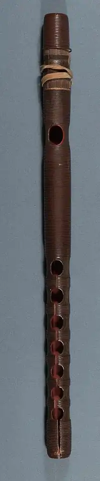 The earliest fue may have developed from pitch pipes known as paixiao in Chinese.[4] The gabachi instrument eventually made its way over to Japan from China in the 5th century,[5] becoming prevalent during the Nara Period.