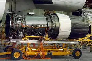 The General Electric F101 is an afterburning turbofan jet engine. It powers the Rockwell B-1 Lancer strategic bomber fleet of the USAF. In full afterburner it produces a thrust of more than 30,000 pounds-force (130 kN). The F101 was GE's first turbofan with an afterburner.[1]