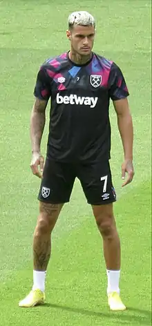 On 26 July 2022, Scamacca signed for Premier League club West Ham United on a five-year contract with an option for a further year.[17] The transfer fee paid to Sassuolo was reportedly of £30.5 million, with an additional £5 million in add-ons. A 10% sell-on clause for the Italian team was also reportedly included in the deal.[18]