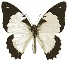 Diagnostic- Hindwing beneath with 4—5 free red subdiscal spots in 1 c—5. The white basal part of the upper surface of the wings is very large, almost reaches the apex of the cell on the forewing and extends beyond the cell on the hindwing; the black parts of the upperside are almost without spots with the exception of a small spot in cellule 7 of the hindwing. Madagascar. [4]