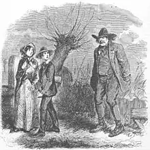In 1862, Marcus Stone,[65] son of Dickens's old friend, the painter Frank Stone, was invited to create eight woodcuts for the Library Edition. According to Paul Schlicke, these illustrations are mediocre yet were included in the Charles Dickens edition, and Stone created illustrations for Dickens's subsequent novel, Our Mutual Friend.[53] Later, Henry Mathew Brock also illustrated Great Expectations and a 1935 edition of A Christmas Carol,[66] along with other artists, such as John McLenan,[67] F. A. Fraser,[68] and Harry Furniss.[69]