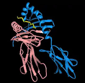 ![]() Illustration of HLA-DQ2.5 with deamidated gliadin peptide in the binding pocket.1s9v | |||||||||||||||||||||