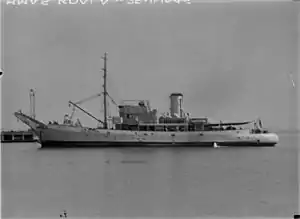 HMAS Koala was a Bar-class boom defence vessel operated by the Royal Australian Navy (RAN) during World War II. She was constructed by Cockatoo Docks and Engineering Company, Sydney, and launched on 14 November 1939.[1] The ship served in Darwin during World War II, and received the battle honour "Darwin 1942–43".[2][3] She was sold in 1969 and was sunk during the Brisbane floods in 1974.
