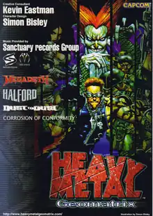 Heavy Metal: Geomatrix (ヘビーメタル ジオマトリックス, Hebī Metaru Jiomatorikkusu) is a 3D arena fighting video game released in 2001 by both Sega and Capcom for the Sega NAOMI and Dreamcast, based upon the Heavy Metal license.