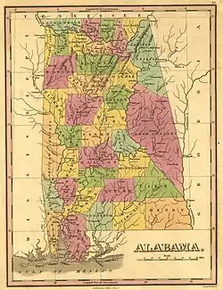 In 1817, the Mississippi Territory was divided. The western portion, which had attracted population more quickly, became the state of Mississippi. The eastern portion became the Alabama Territory, with St. Stephens on the Tombigbee River as its temporary seat of government.