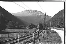 After the end of the war Norsk Hydro had a strong liquidity, while the green revolution and increased industrialization of agriculture in Europe boomed the demand for the products; from 1945 to 1955 production increased eightfold.[4] The increased transport was a heavy burden on the two steamships, and in 1953 Norsk Transport ordered MF Storegut, a diesel powered ship of 1119 gross register tons. She was launched on 25 May 1956 and the two older ferries were put to reserve duty in the meantime.[5] A number of upgrades were made to the line, and the two locomotives 9 and 10 were bought in 1958. This was followed by the three diesel locomotives 20, 21 and 22 from Henschel. In 1966 two NSB El 1 locomotives were bough, and the voltage on the line increased from 10 to 15 kV.[6]