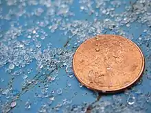 Ice pellets are known as sleet in the United States, the official term used by the U.S. National Weather Service.[2] However, the term sleet refers to a mixture of rain and snow in most Commonwealth countries instead,[3] including Canada.[4] Because of this, Environment Canada never uses the term sleet, and uses the terms "ice pellets" or "wet snow" instead.[5]