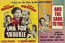 Inn for Trouble is a 1960 black and white British comedy film intended as a low budget filler to support a main feature in the days of cinema double features. it was a spin-off of the 1950s sitcom The Larkins - starring Peggy Mount, David Kossoff and Leslie Phillips; the title makes allusion to the real Trouble House Inn in Gloucestershire near Tetbury.