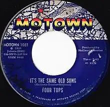 "It's the Same Old Song" was recorded by the Four Tops for the Motown label.[2] It was released in 1965 as the second single from their second album. Written and produced by Motown's main production team Holland–Dozier–Holland, the song is today one of The Tops' signatures, and was reportedly created—from initial concept to commercial release—in 24 hours. It reached #5 on the Billboard Hot 100 and #2 on the Billboard R&B chart.[3] It also reached #34 in the UK.[4]