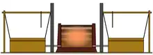 The smelting process used is different from the modern mass production of steel. A clay vessel about 1.1 m (3 ft 7 in) tall, 3 m (10 ft) long, and 1.1 m (3 ft 7 in) wide is constructed. This is known as a tatara. After the clay tub has set, it is fired until dry. A charcoal fire is started from soft pine charcoal. Then the smelter will wait for the fire to reach the correct temperature. At that point he will direct the addition of iron sand known as satetsu. This will be layered in with more charcoal and more iron sand over the next 72 hours. Four or five people are needed to constantly work on this process. It takes about a week to build the tatara and complete the iron conversion to steel. Because the charcoal cannot exceed the melting point of iron, the steel is not able to become fully molten, and this allows both high and low carbon material to be created and separated once cooled. When complete, the tatara is broken to remove the steel bloom, known as a kera. At the end of the process the tatara will have consumed about 9.1 t (9.0 long tons; 10.0 short tons) of satetsu and 11 t (11 long tons; 12 short tons) of charcoal leaving about 2.3 t (2.3 long tons; 2.5 short tons) of kera, from which less than a ton of tamahagane can be produced.[3] A single kera can typically be worth hundreds of thousands of dollars, making it many times more expensive than modern steels.[4]