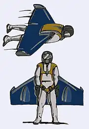 Jet wingsuits use small turbojets, but differ from other aircraft in that the fuselage and flight control surfaces consist of a human.[19][20]