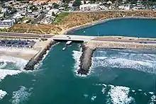 A small tidal rise spreading tidal water over a large expanse of lagoon or inland backwater causes the influx and efflux of the tide to maintain a deep channel through a narrows no longer confined by a bank on each side, becomes dispersed, and owing to the reduction of its scouring force, is no longer able at a moderate distance from the shore effectually to resist the action of tending to form a continuous beach in front of the outlet. Hence a bar is produced that diminishes the available depth in the approach channel. By carrying out a solid jetty over the bar, however on each side of the outlet, the tidal currents are concentrated in the channel across the bar, and lower it by scour. Thus the available depth of the approach channels to Venice through the Malamocco and Lido outlets from the Venetian Lagoon have been deepened several feet (metres) over their bars by jetties of rubble, carried out across the foreshore into deep water on both sides of the channel. Other examples are provided by the long jetties extended into the sea in front of the entrance to Charleston harbour, formerly constructed of fascines weighed down with stone and logs, but subsequently of rubble stone, and by the two converging rubble jetties carried out from each shore of Dublin Bay for deepening the approach to Dublin harbour.[2] Jetties have the adverse effect of endangering Surf Culture as a whole with their ability to destroy surf breaks.[3]