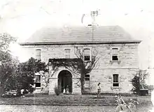 In 1844, explorer Ludwig Leichhardt stayed at Jimbour, at that time the most northerly station on the Downs, preparing for his trip to Port Essington. In 1864, utilising their pre-emptive purchase rights, Thomas Bell, Joshua Peter Bell and John Alexander Bell acquired title to 4,786 acres (1,937 ha) (pre-emptive portion 1) of the Jimbour holding as tenants in common. This pre-emptive purchase included the head station site. Following Thomas Bell's death in September 1872, the Jimbour freehold was transmitted to Joshua Peter Bell, John Alexander Bell and a third brother, Marmaduke Bell, as tenants in common. The original house built by Scougall was burned down in 1867.[3][2]